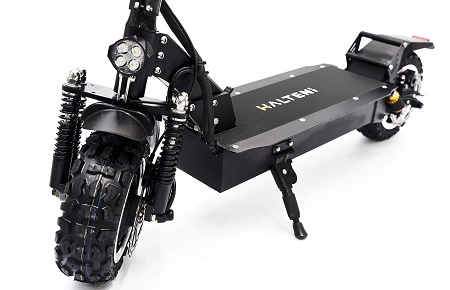 Стильный, сдержанный и утонченный дизайн электросамоката Halten RS-03. Рама выполнена из алюминия высокой прочности. Покрытие черное, матовое, с водоотталкивающим составом. Над передним колесом расположена мощная светодиодная фара. Подвеска обрамлена стильной красной подсветкой. Механизм складной, что значительно облегчает транспортировку и хранение девайса.