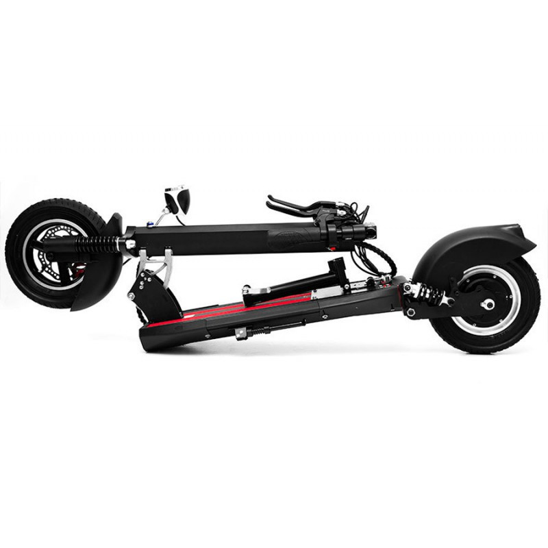 Самокат складывается не более, чем за 15 секунд. Его легко транспортировать, брать с собой в общественный транспорт, класть в багажник автомобиля или подниматься на лифте. При этом, чтобы припарковать электросамокат, его совсем необязательно складывать. Для этого можно выдвинуть специальную парковочную подножку, благодаря которой устройство легко и надежно паркуется на любой поверхности.